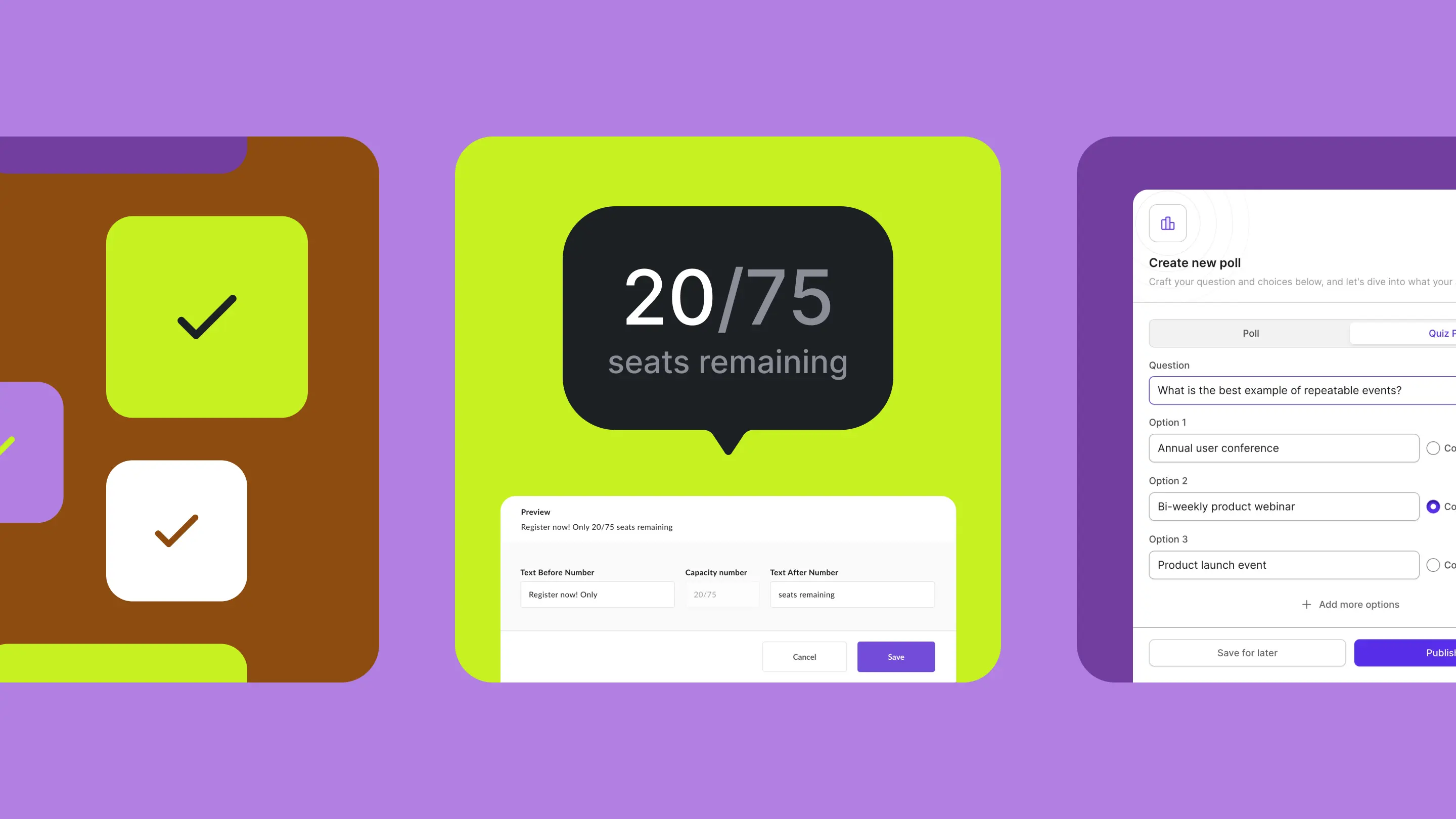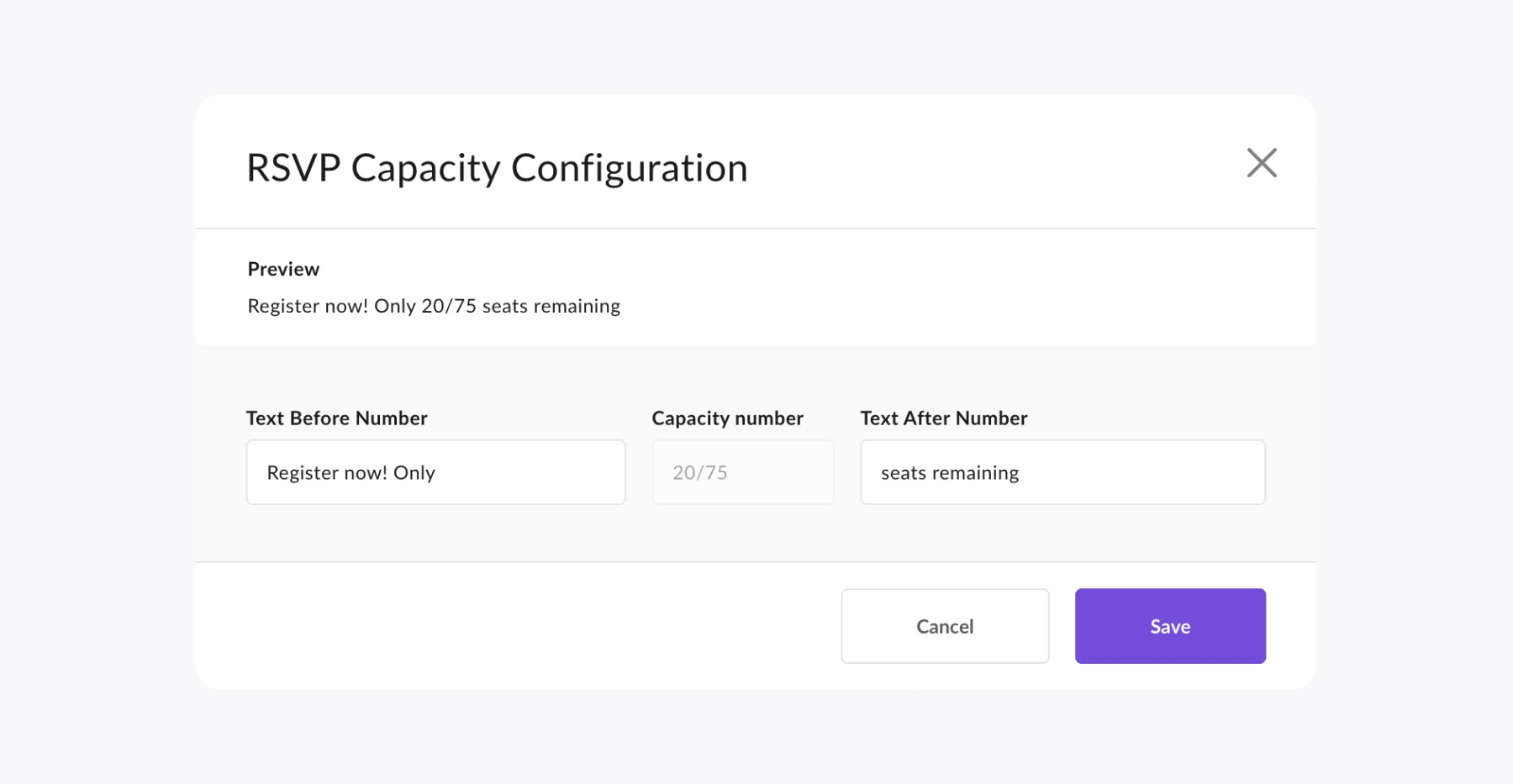 Our new capacity element dynamically displays the number of remaining spots in your event.
