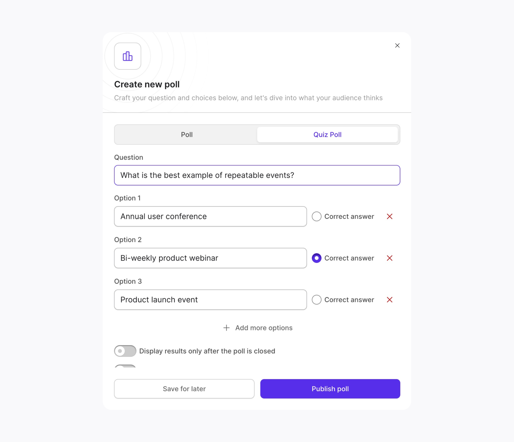 As you move through your content, toss in quick knowledge checks to reinforce key points and see how much your audience is absorbing.