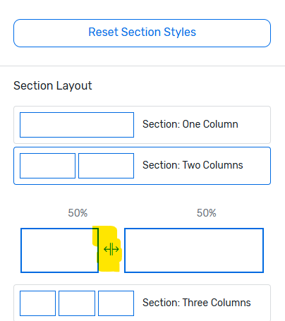 Hi! when you select a different section column width, you can drag the columns to different sizes.