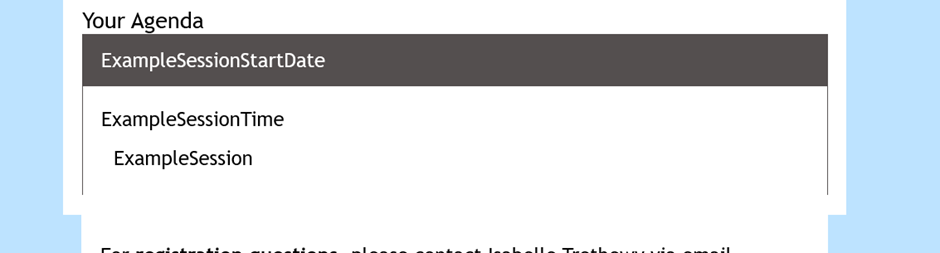This issue occurs when data tags such as {[C-CURRENT REGISTRATION]} or {[C-MY AGENDA:ANN]} are used. These data tags are hardcoded, so they automatically occupy space and may overflow the email body when the email width is set to 600px.