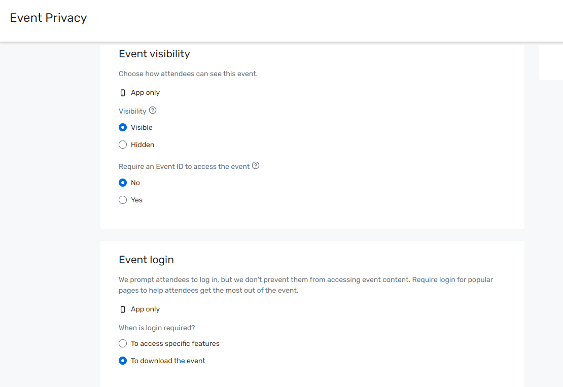 Hello, I'm brand new to Cvent and building my first event app. I'd like to keep the event visible in the Cvent app so that my attendees don't have to search for a complicated event ID, but I'd like to hide the event dates and location; I don't really want that visible to the whole world. Is this possible? Thanks!