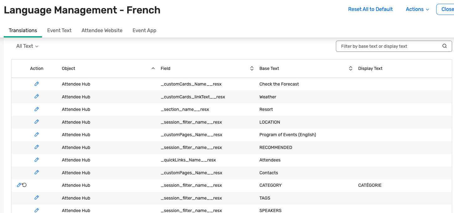 This is the first multi language Attendee Hub App I've done. Languages are English and French. I'm wondering how the translation works in the app. Does there need to be something added to where they can select their language? Is it automatically translated somehow? On our actual Event Website (not Attendee Hub Website as we don't use that), we have a language toggle. But I also know that a lot of website browsers can automatically detect the need for translation and it's completed for the user. I can see under Language Management that there is a French language/translation "In Progress" (see first screenshot below), but I'm not sure what that means, and when I click on the French and go into "Translations", it doesn't seem like a lot have been translated (see second screenshot below). Thank you for any help in advance!