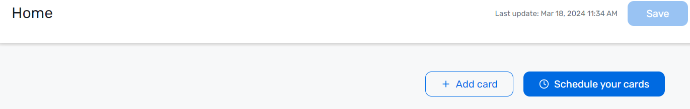You can! On the Pages tab, click "Edit Home Page." From there, click "Schedule Your Cards" at the top of the page: