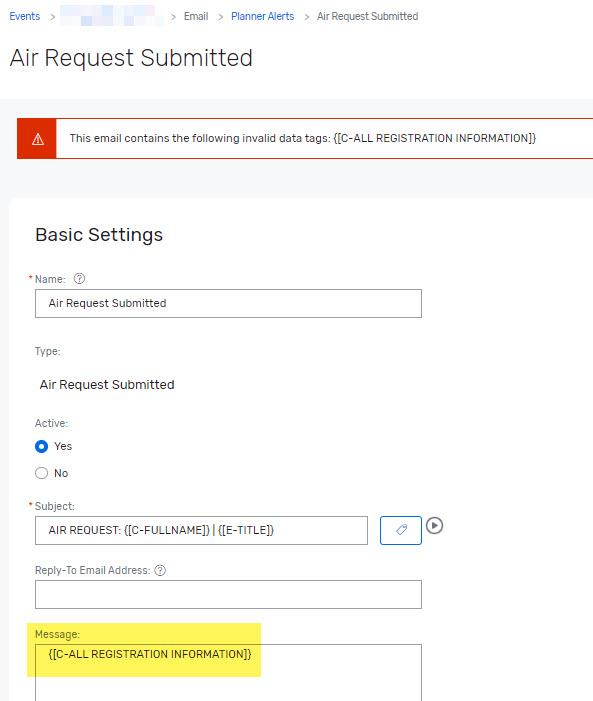Has anyone ever been able to get the system to send only one planner alert for air requests that contains both the invitee's and their guest's air request info? I've only ever seen the system send two planner alerts – one for the invitee and one for the guest. The travel agency we're using for an event right now is saying they only ever receive one alert.