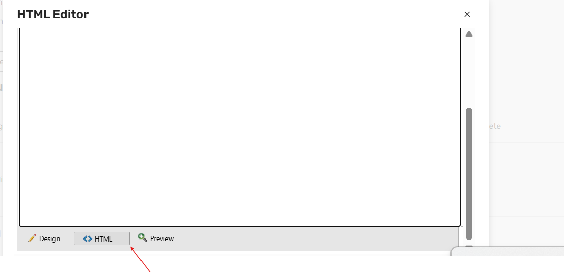 In the HTML editor, scroll to the bottom, click HTML, and paste the link with inline styling, for example: