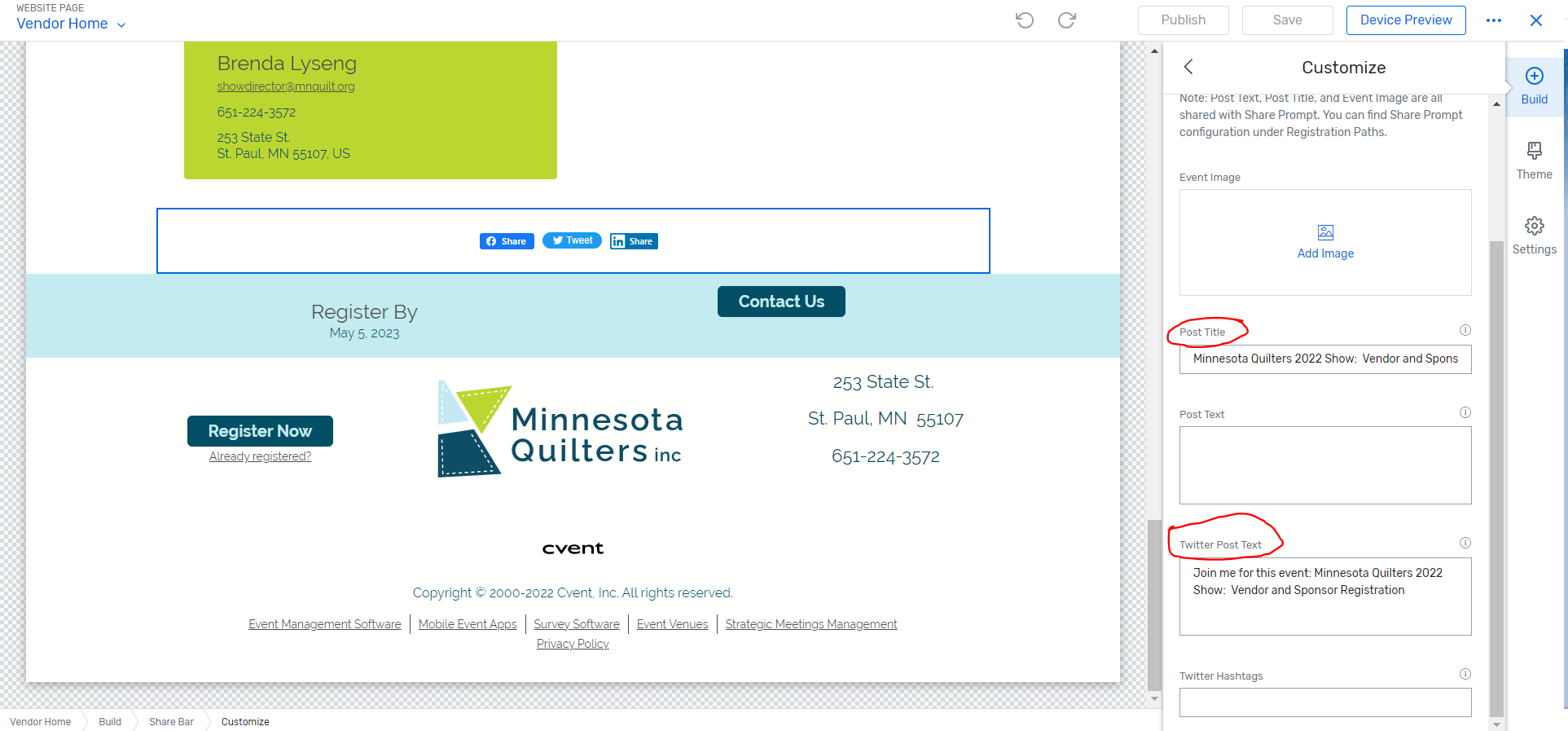 I rolled over a 2022 event for my 2023 version. Worked great except now when I post the summary weblink in a FB post, it is labeled as the 2022 xxxx. How do I fix that? The event has 2023 in it's title in Cvent.