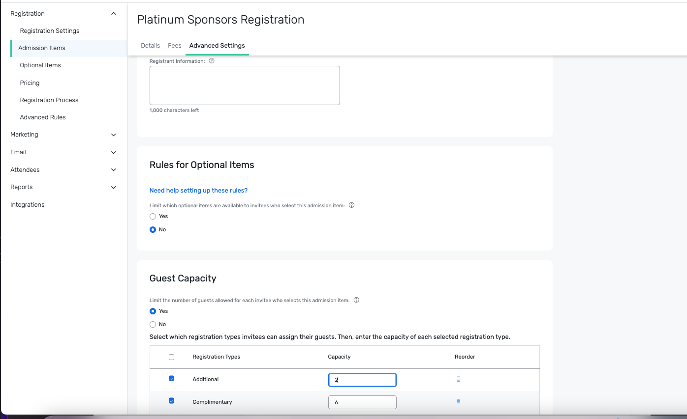 This allows you to have more granular control over the number of guests registrants can bring. This can be especially useful for cases like Sponsor or Exhibitor registration, which previously had to be handled through a combination of many registration types, admission items, and registration paths.