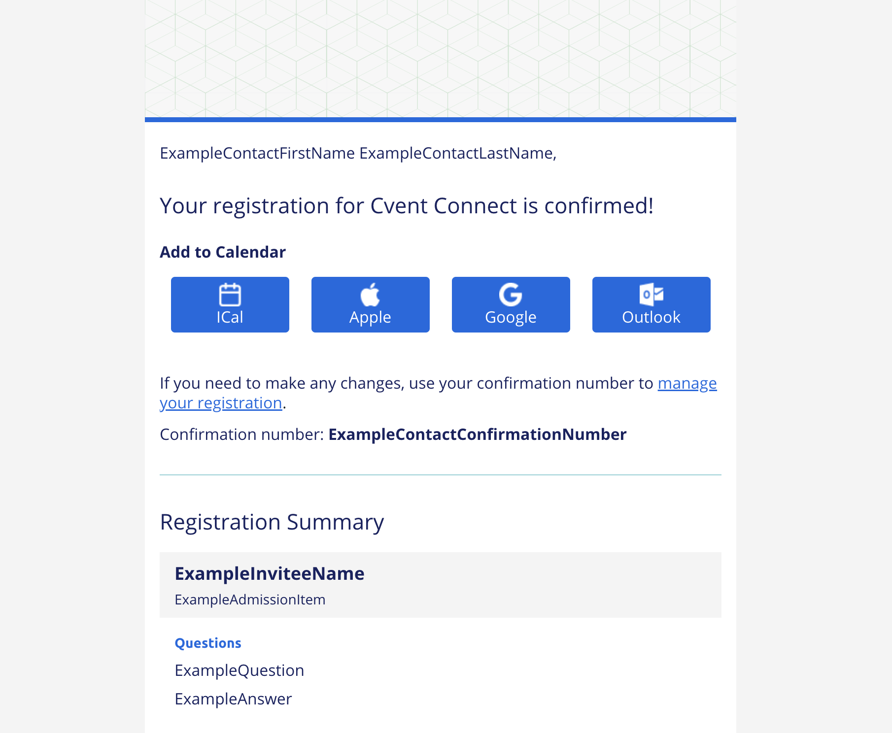 The email Add to Calendar widget can be put in any email and allows recipients to add the event to their calendar. It supports all major calendar clients, Apple Calendar, Google Calendar, and Outlook Calendar.